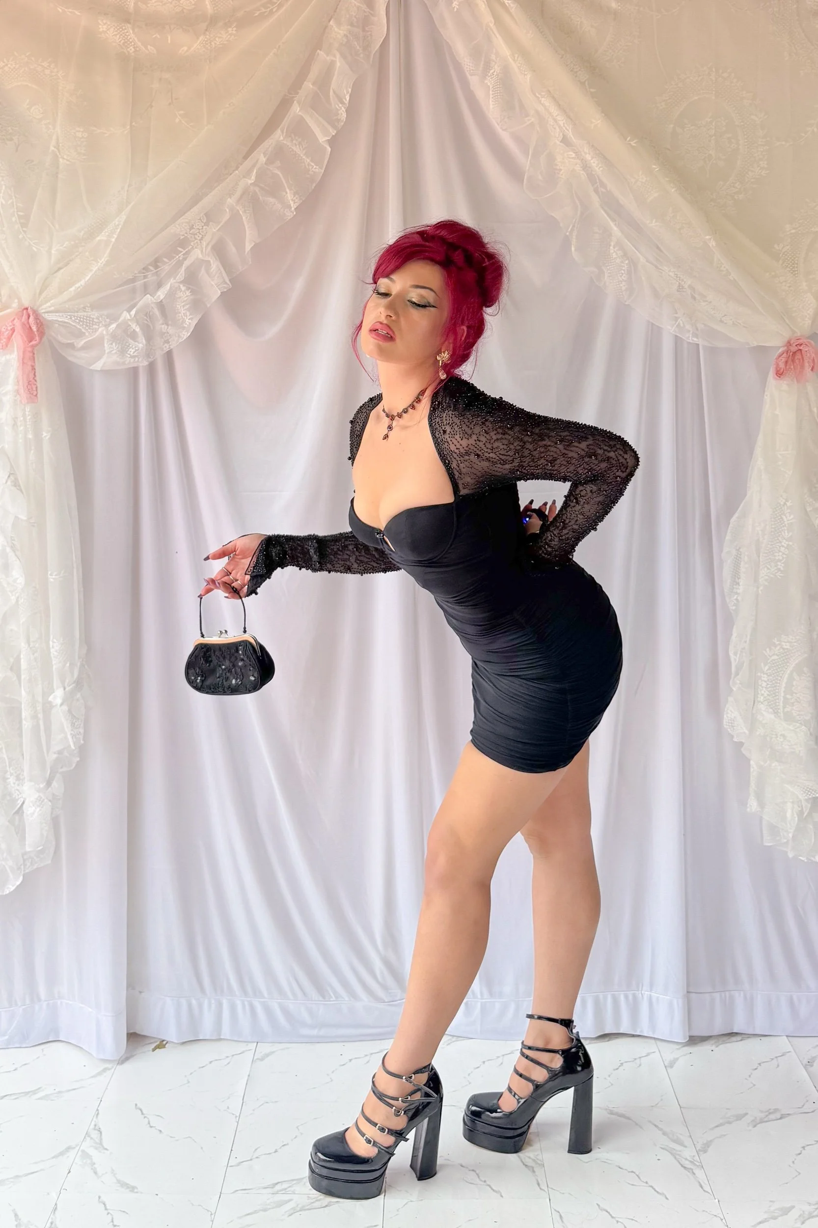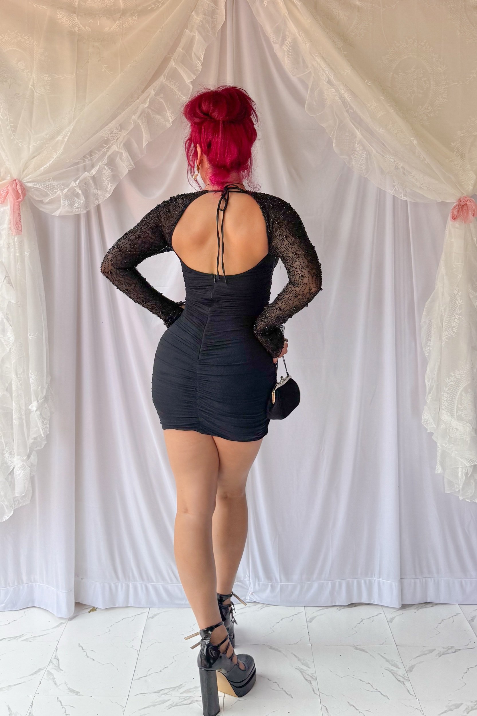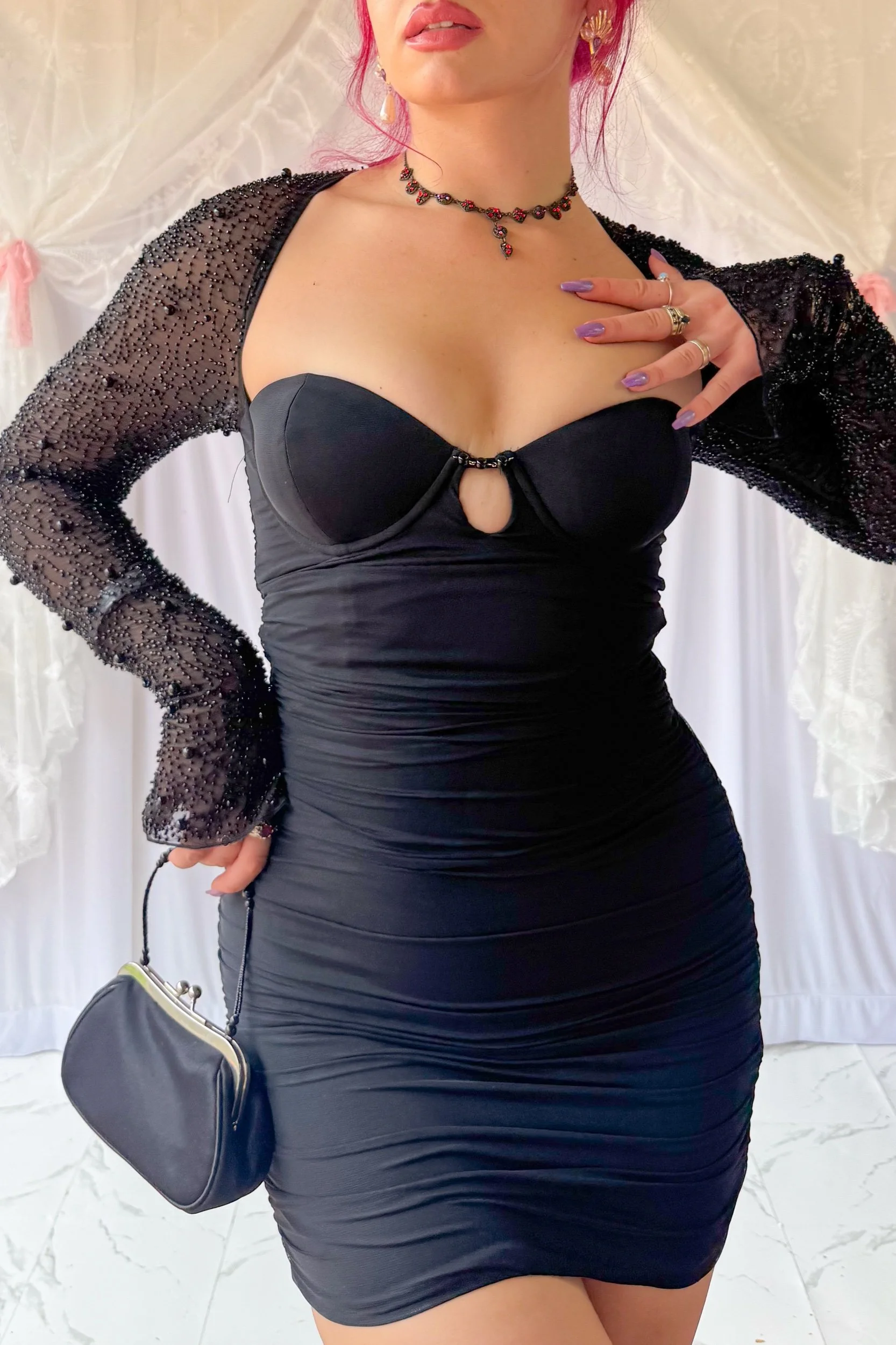 Oh Polly Beaded Sleeve Cocktail Dress