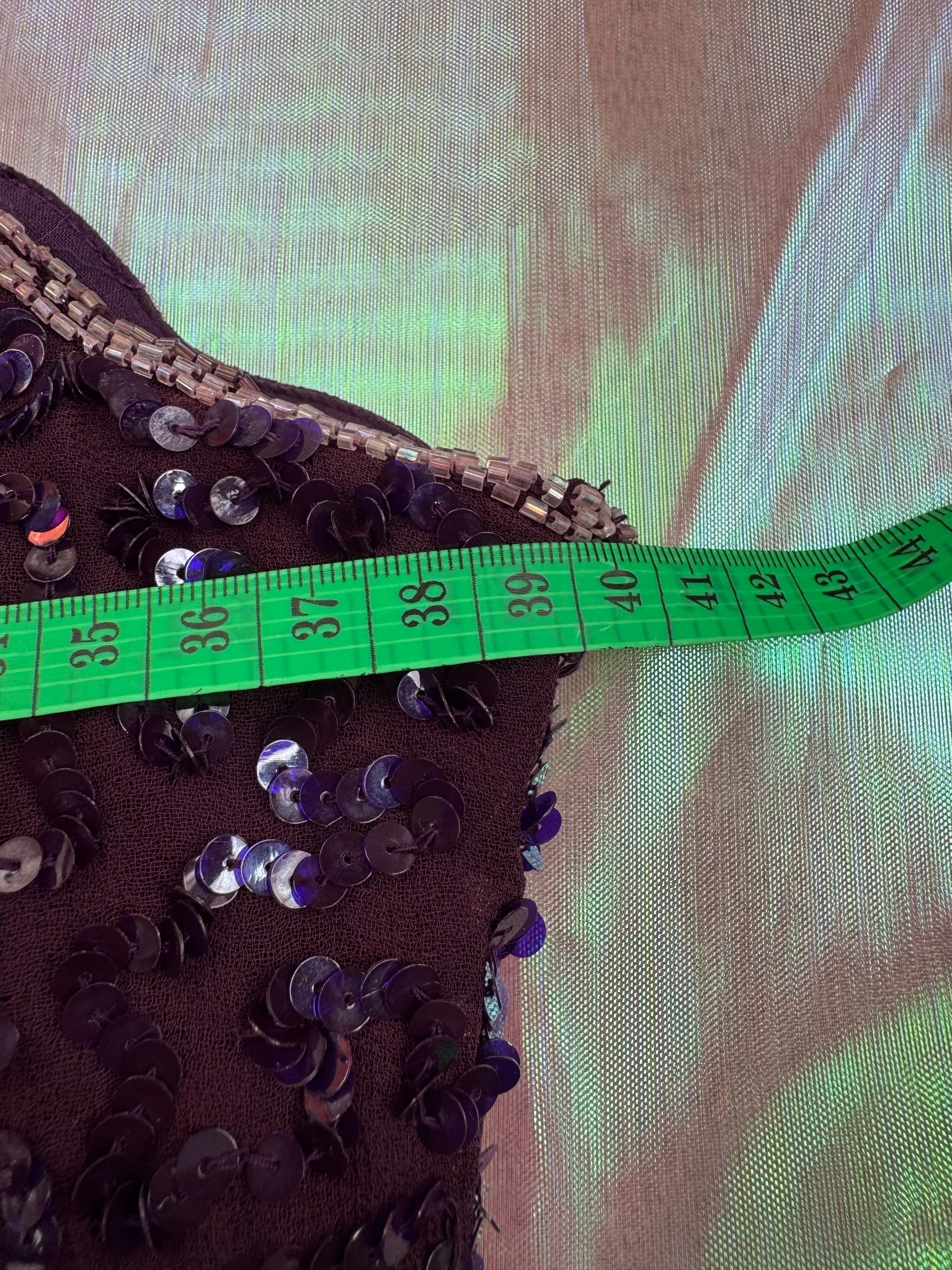 Good Condition — missing beads | Approx size 10 | If no label shown it’s unlabelled | See photos for measurements - pit to pit - shoulder to bottom