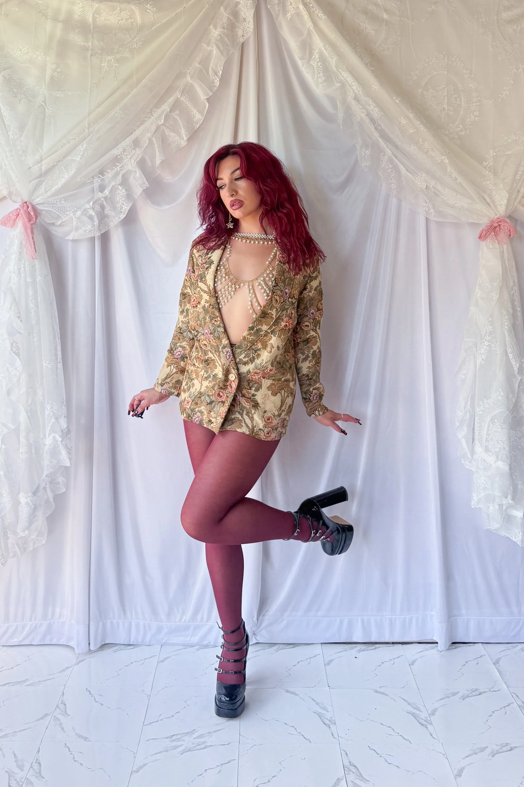 90s Floral Tapestry Blazer