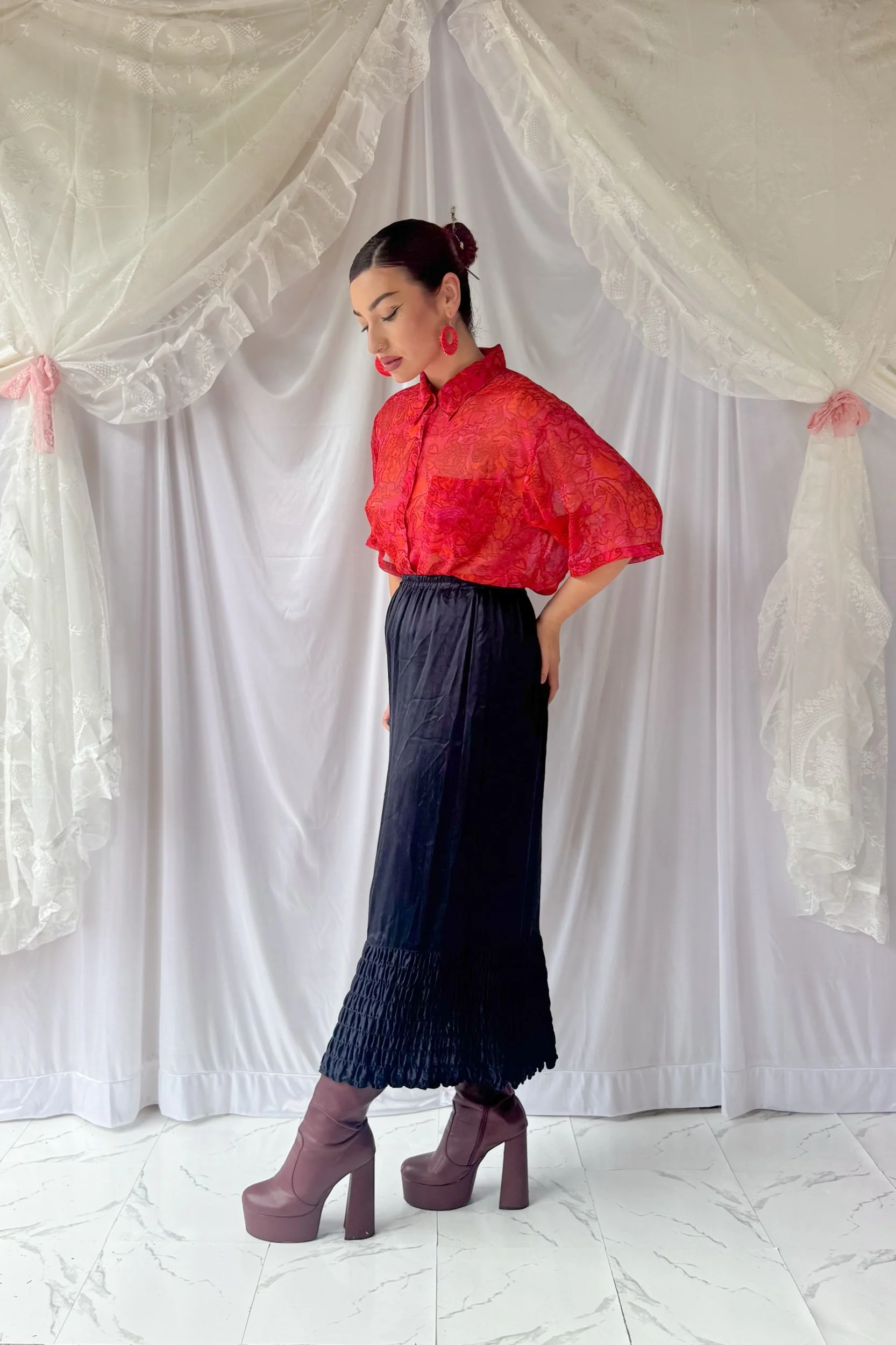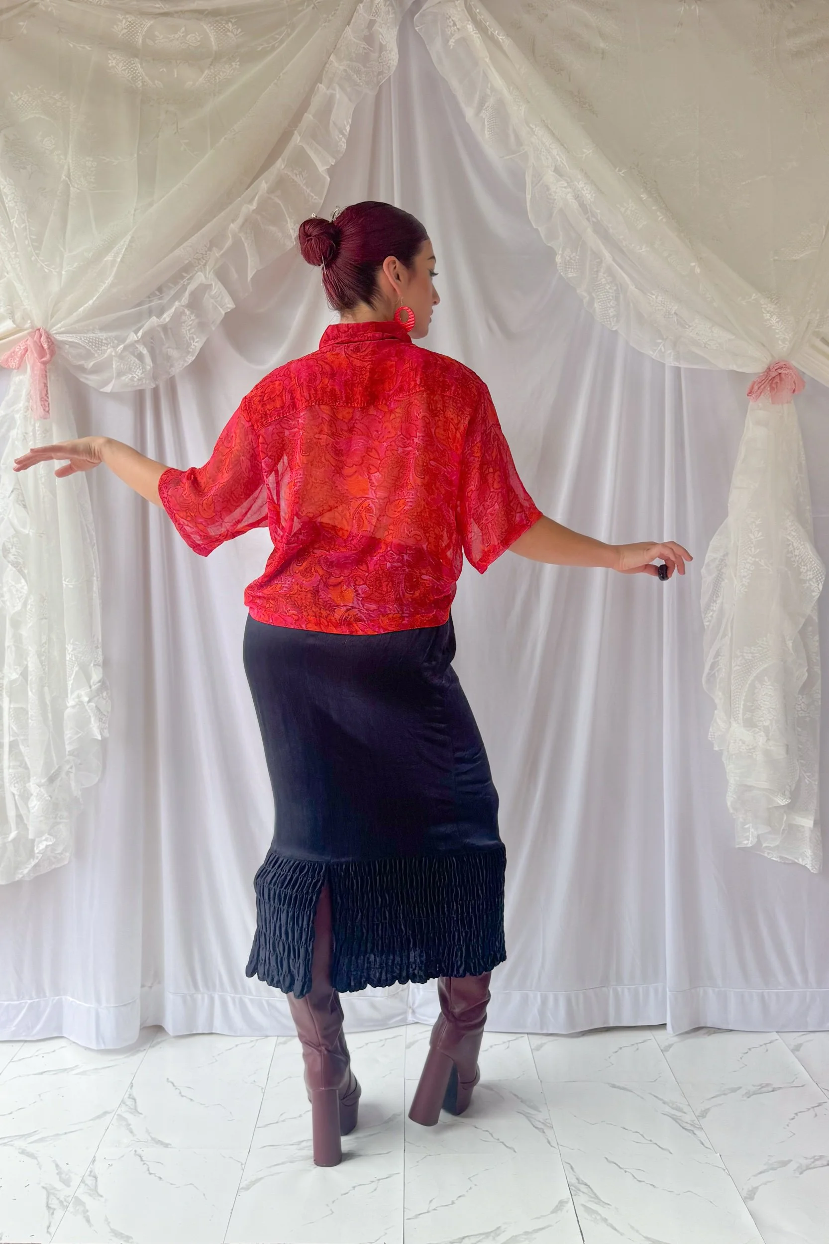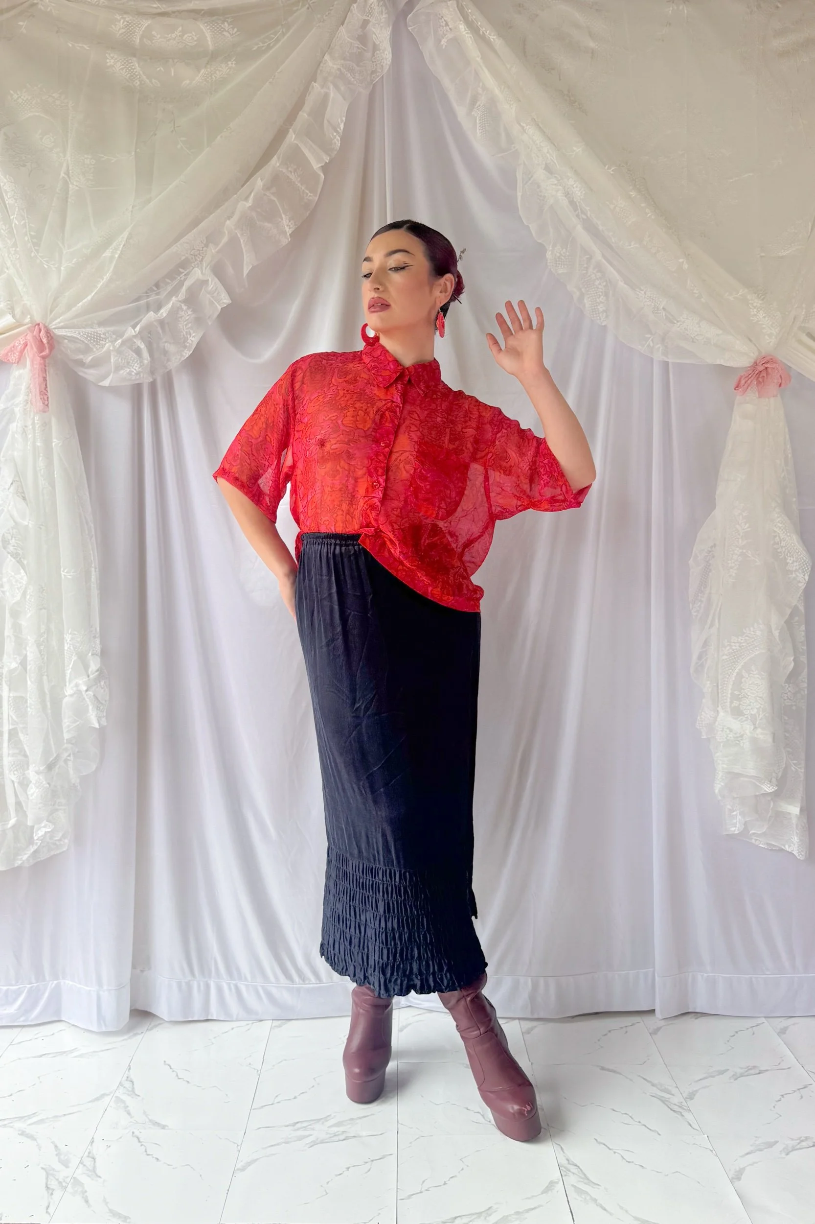 90s Vibrant Sheer Floral Blouse