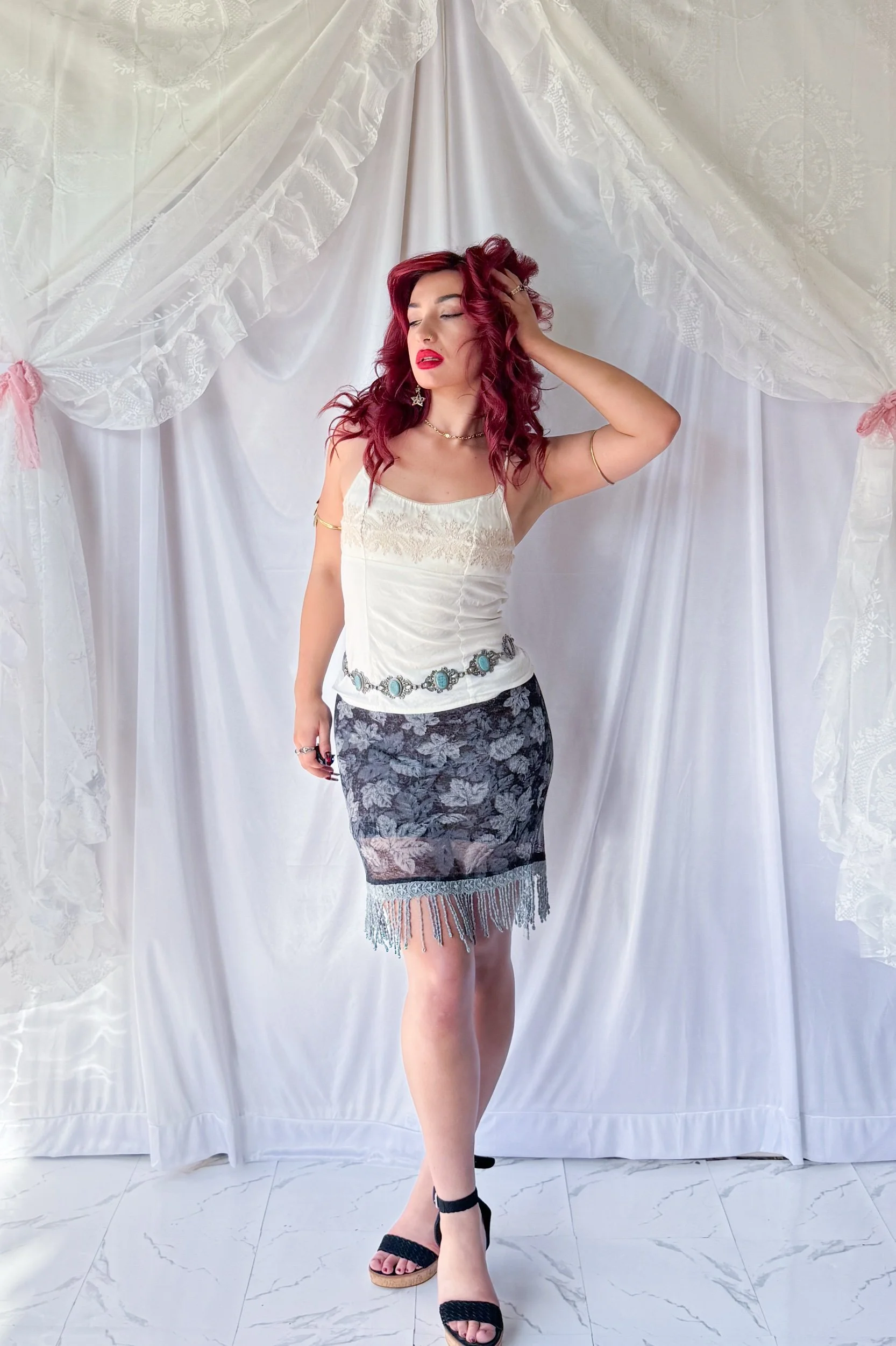 Y2K Mesh Tassle Mini Skirt