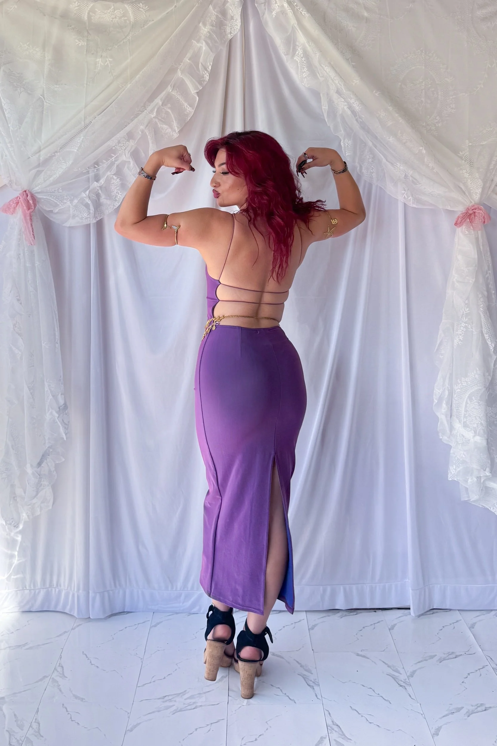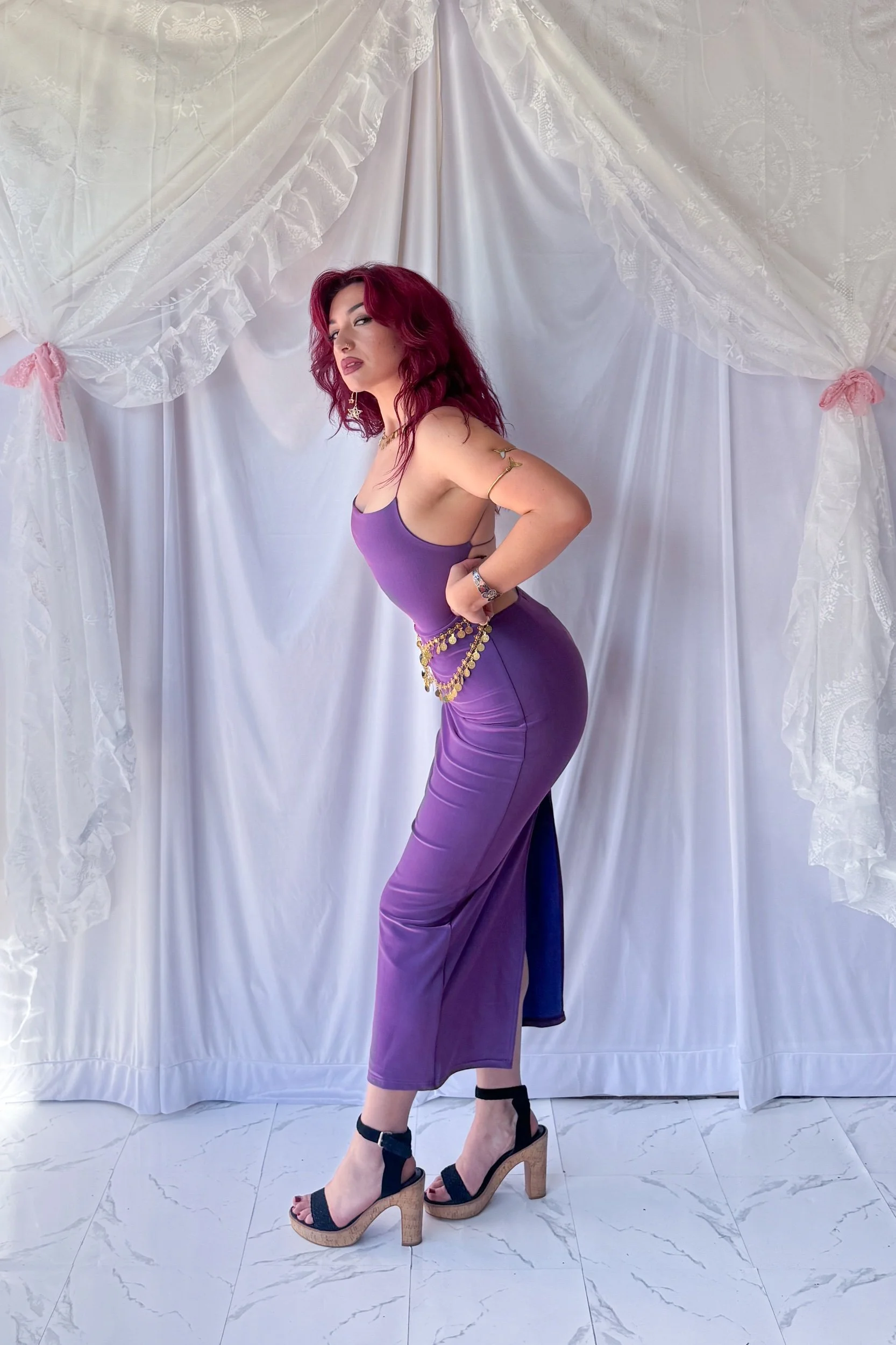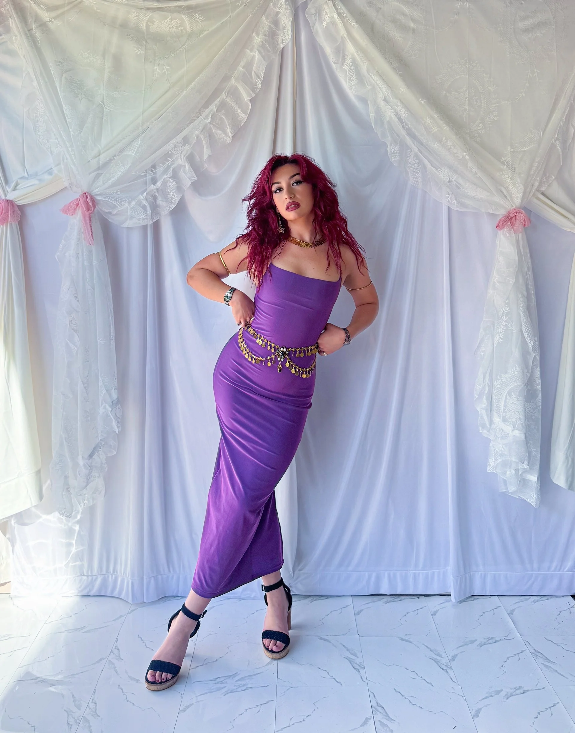 Y2K Amethyst Sheeny Maxi Dress