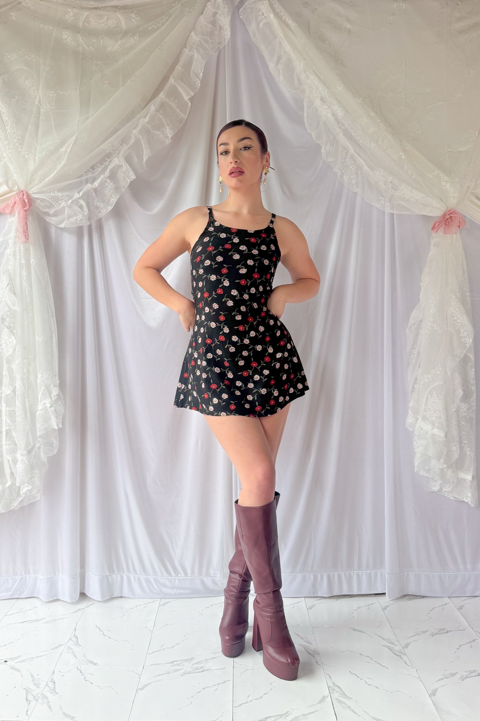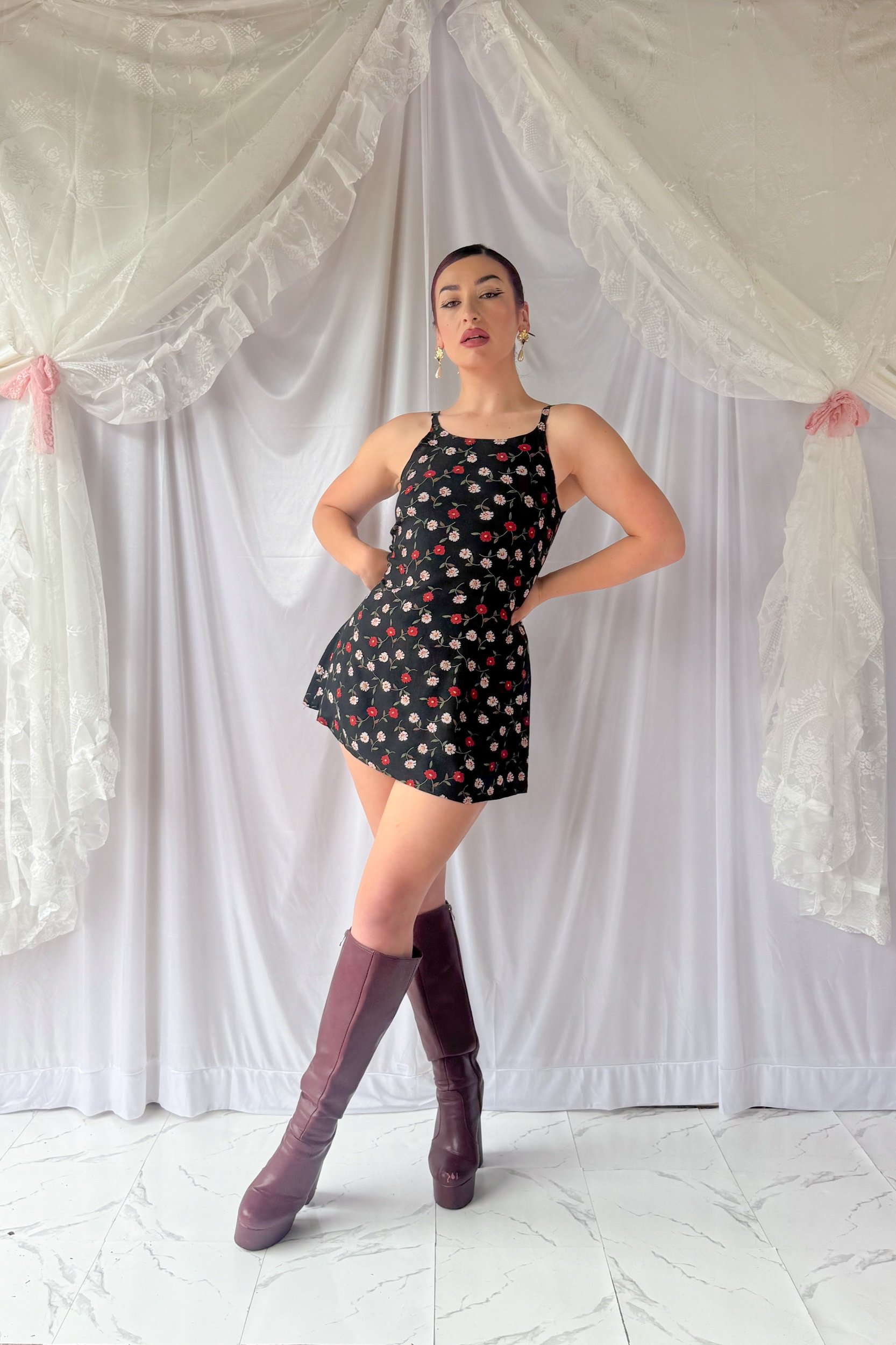90s Floral Cotton Mini Dress